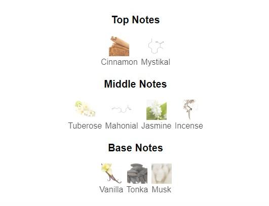 Top Notes: Accord. Cinnamon and Mystikal Middle Notes: